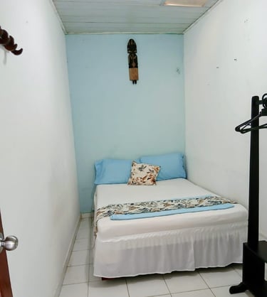 Habitación con capacidad máxima para tres personas, consta de 1cama doble y 1cama individual, ventilador y baño privado.